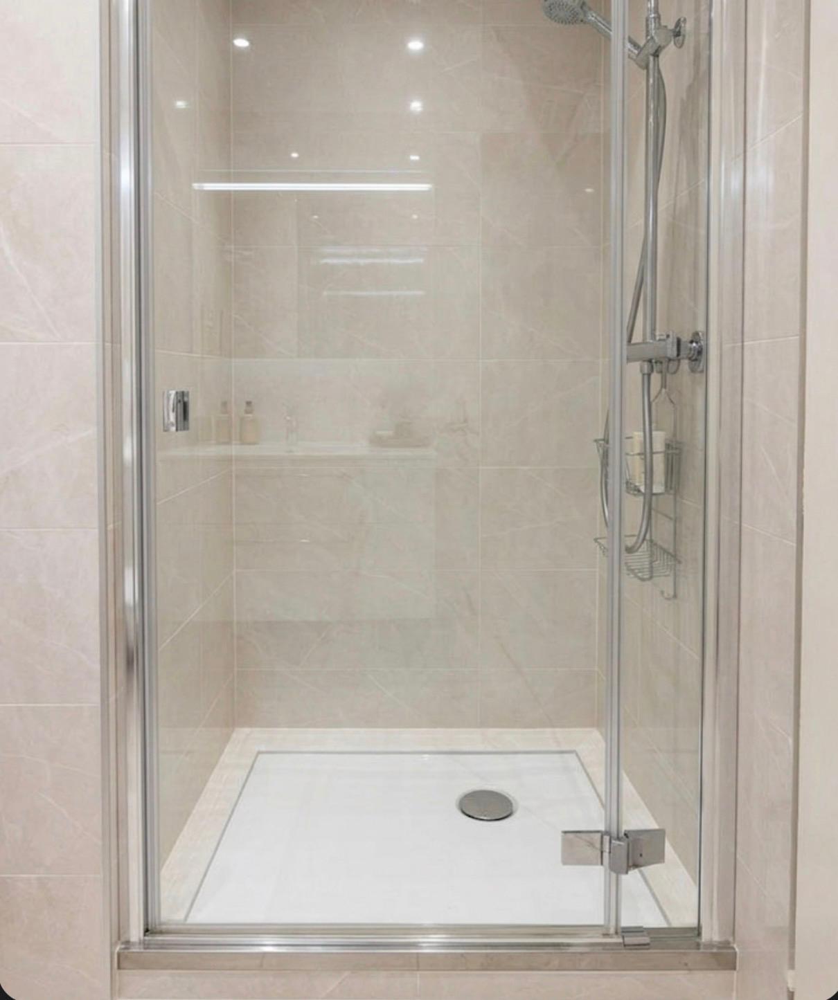 Two bedrooms with built-in wardrobes, including a master suite with an en-suite bathroom/shower and a safe. A second shower room features a laundry area (washing machine included).